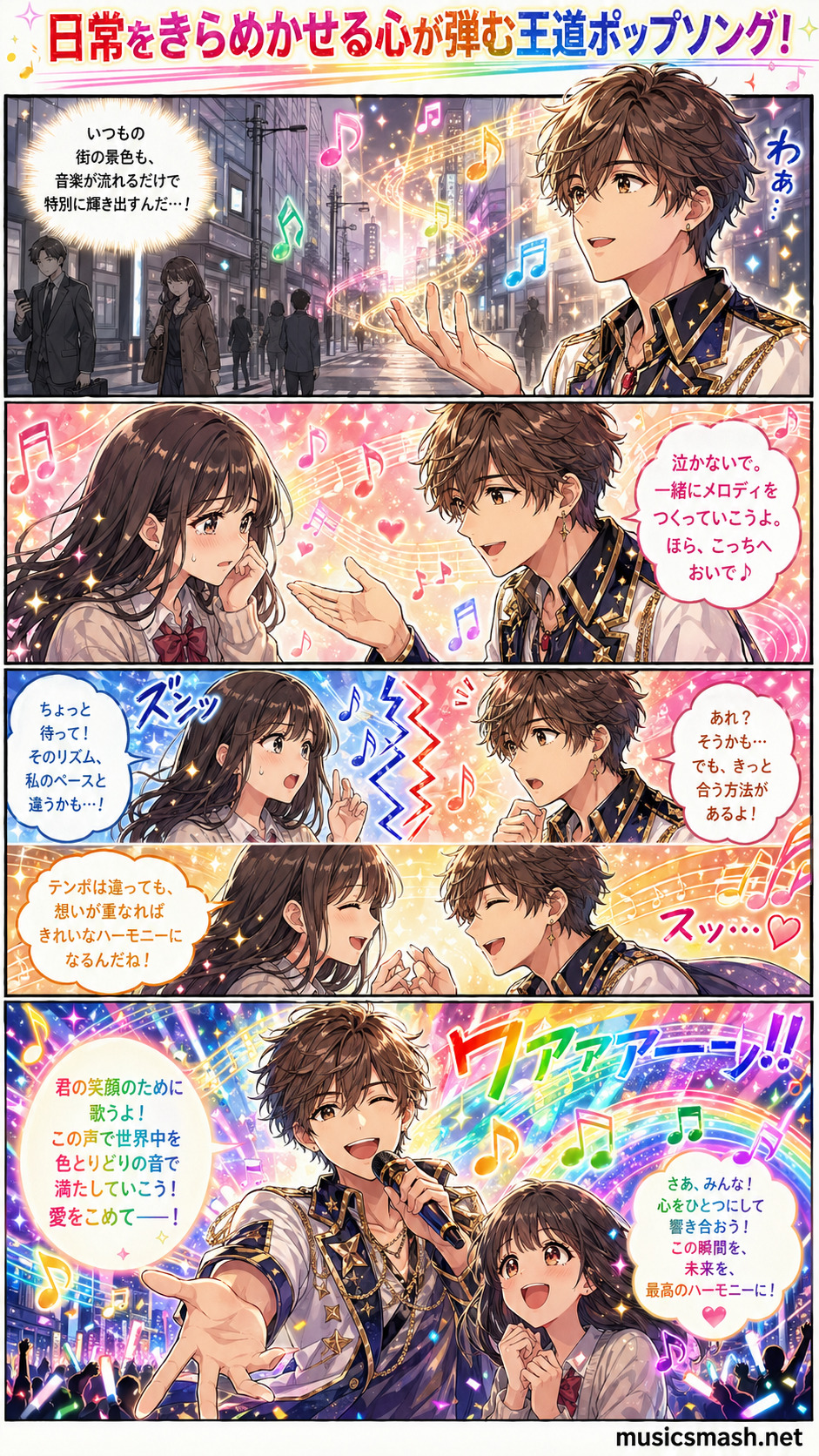 歌声は甘くやわらかいだけでなく、要所で芯の強さも感じられます。メロディは耳に残りやすく、サビに向かって自然に気持ちが上がっていく流れも魅力です。難しく構えずに楽しめる明るさがありながら、細かな音の重なりやテンポの良さからは、丁寧に作り込まれた作品であることも伝わってきます。MVでは、音楽が持つ楽しさや非日常感がカラフルに表現されており、見ているだけで心が弾みます。まるでステージの幕が開き、聴き手も一緒に魔法の世界へ招かれるような雰囲気があります。