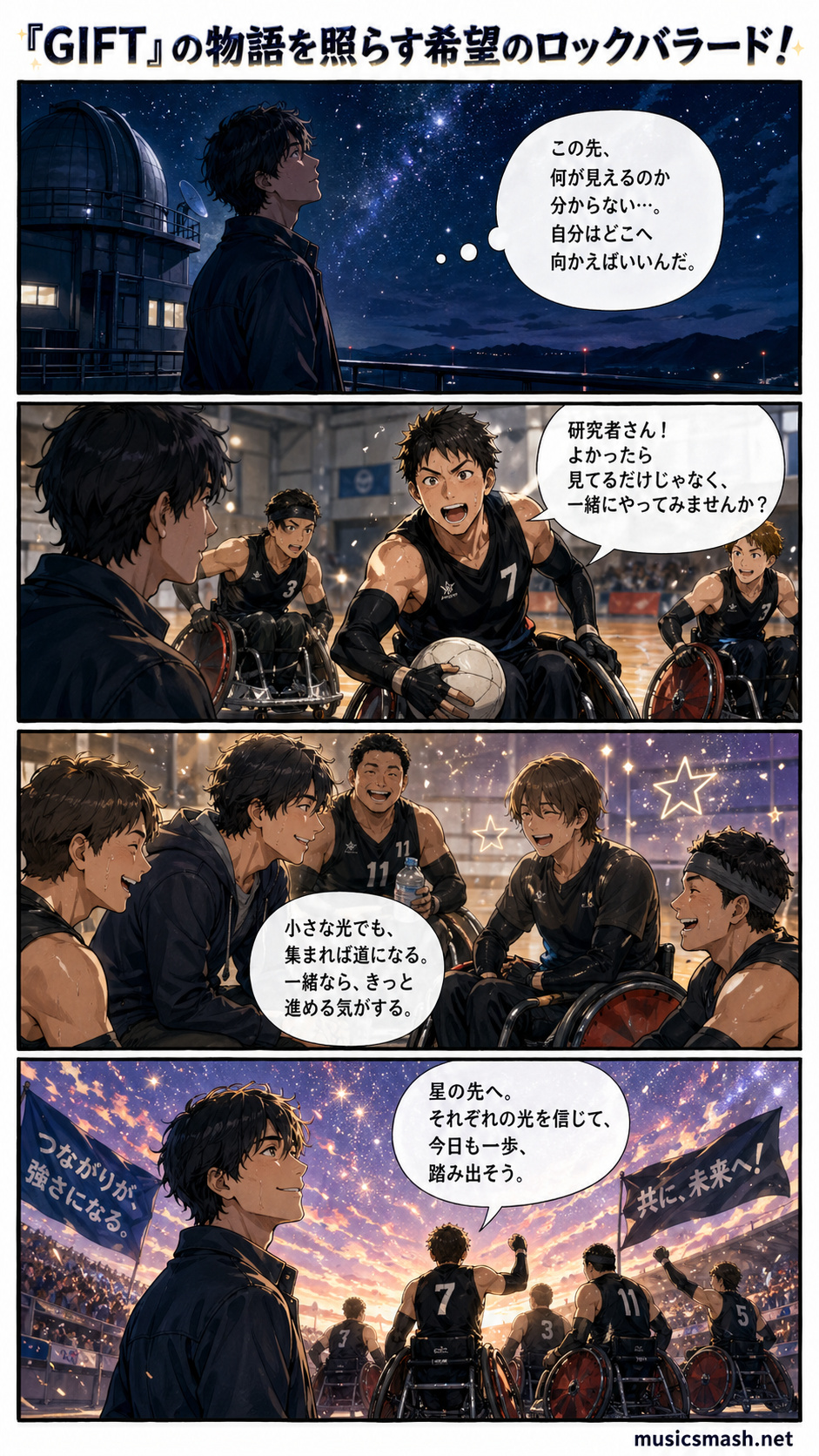 Official髭男dismの新曲「スターダスト」は、TBS系日曜劇場『GIFT』の主題歌として届けられた一曲です。2026年4月13日に配信が始まり、4月22日発売の両A面シングル「スターダスト / エルダーフラワー」にも収録されています。『GIFT』は、孤独な天才宇宙物理学者・伍鉄文人が、車いすラグビーの弱小チームと出会い、仲間や家族の大切さ、そして“愛”を知っていく完全オリジナルストーリー。激しくぶつかり合う競技の熱さと、心に傷を抱えた人々の再生が重なるドラマの世界に、「スターダスト」は深く寄り添っています。